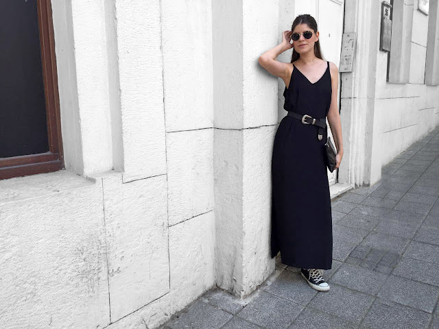 ENG: You can changce your look with a simple black dress.I use this beautiful maxi dress from Pretty Lavish whit a belt and with my old Converse.